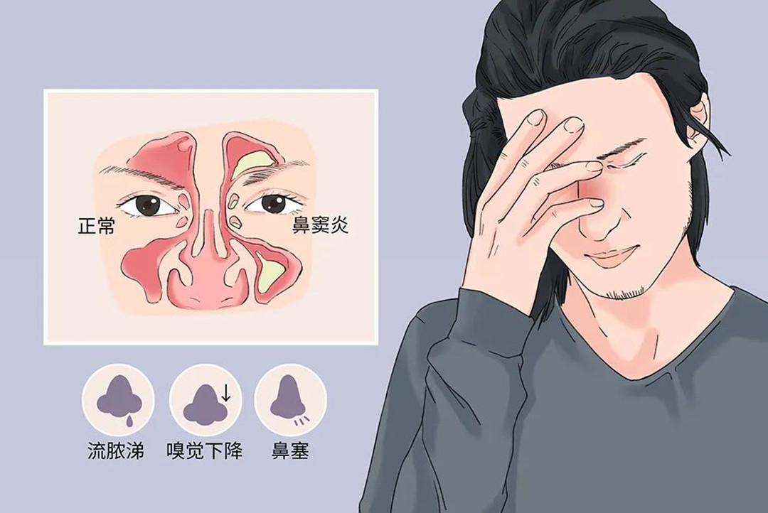 窦口堵塞时,可出现鼻根、眼眶周围胀闷、鼻塞、嗅觉减退、鼻后滴漏