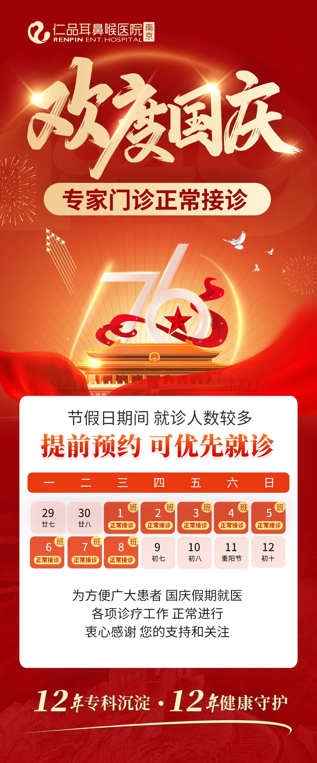 双节健康不打烊!南京仁品国庆、中秋正常接诊!