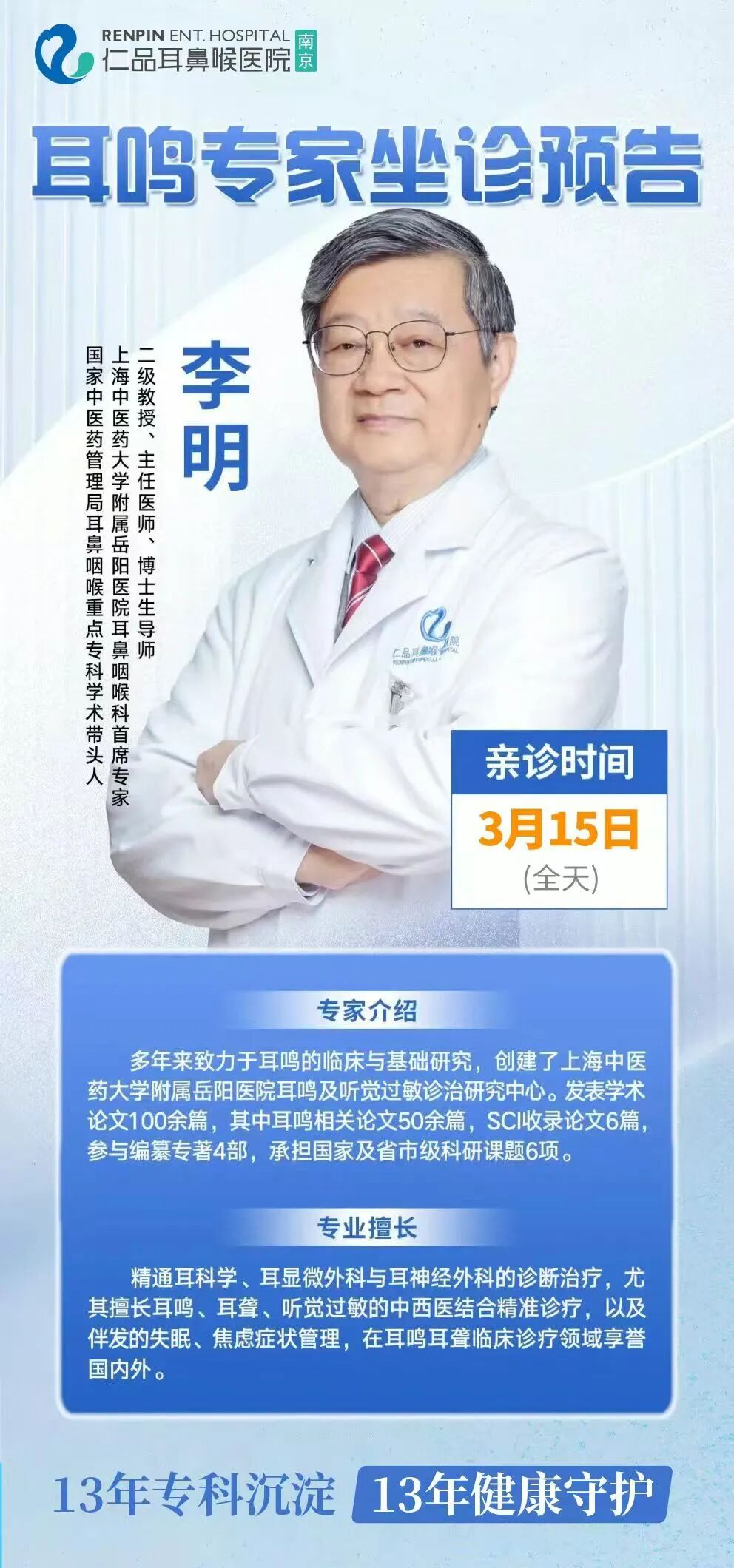 许多耳鸣患者在求医路上辗转奔波,耗费的不仅是时间和金钱,更可能错过宝贵的治疗时机。李明教授此次专程来宁面诊,旨在为您提供: